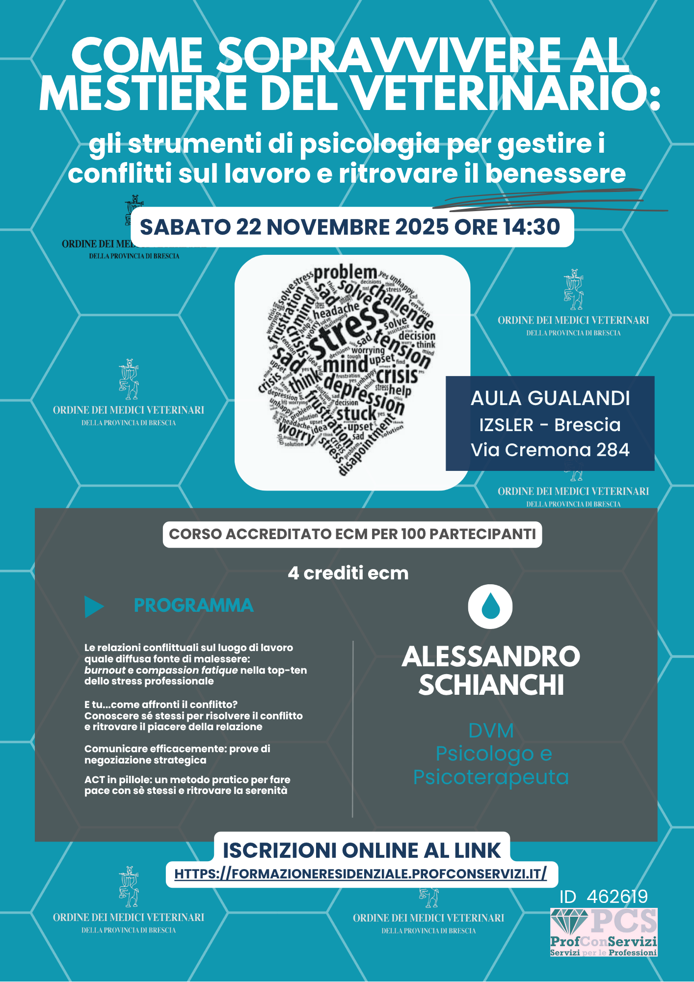 L’Ordine dei Medici Veterinari della Provincia di Brescia organizza il corso ECM dal titolo: