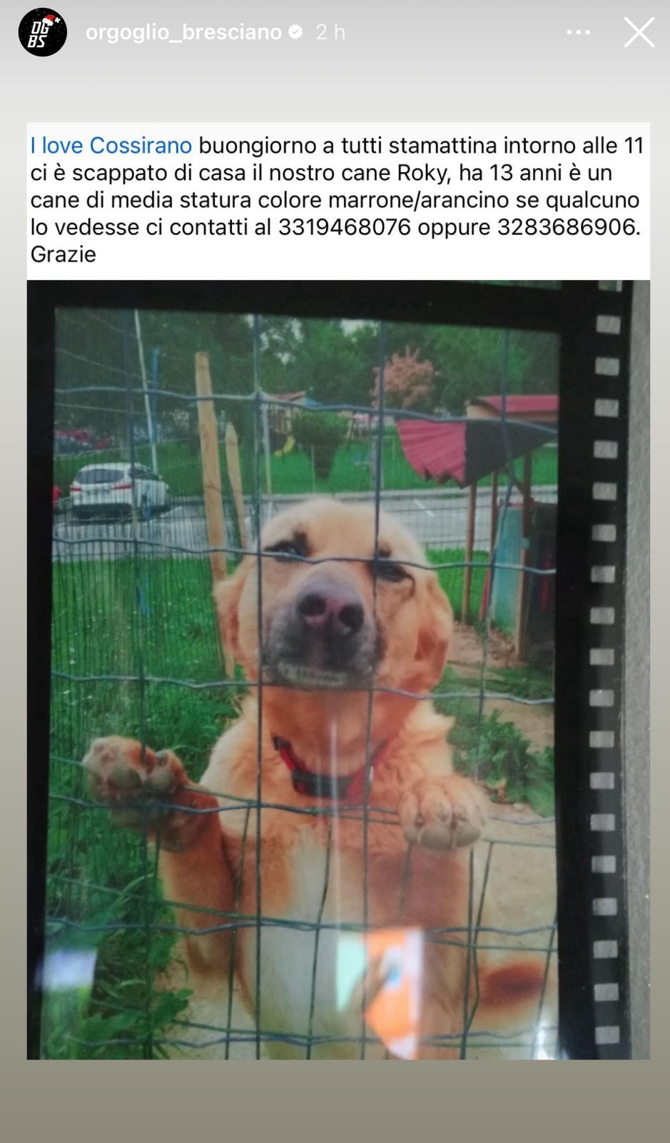 Alle 11 circa del 28 dicembre è scappato dalla nostra abitazione in via Cavour Cossirano frazione di Trenzano il nostro cane di nome Rocky, ha 13 anni colore marrone/arancione, pelo corto, statura media, ha una striatura nera sulla coda. È un cane che non è abituato ad uscire, non si fa avvicinare da nessuno, indossa un collare nero. Qualsiasi persona lo veda ci contatti al 3319468076 oppure al 3283686906. Grazie.